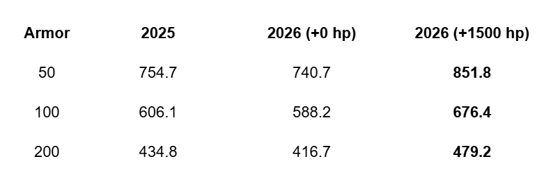 This resulting value is then used as the denominator in the final damage calculation, producing the following damage reduction coefficient.