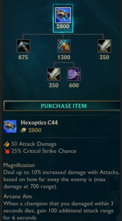 Its true power comes from two passives: the bonus damage applied at 700 range and the additional 100 attack range gained after participating in a takedown. These effects create strong synergy with crit-based champions who have long base attack range and place high value on each individual auto attack rather than raw attack speed.